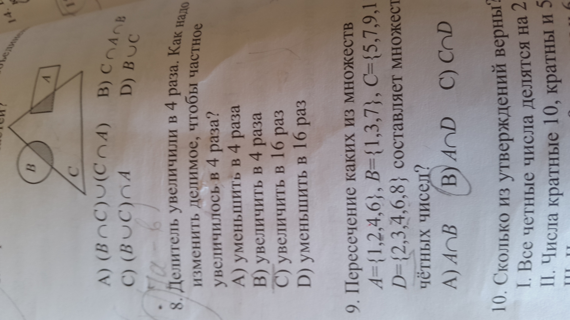 если делитель увеличить в 4 раза, и частное увеличилось в 4 раза, то выражение можно представить в виде: a/4b=4c