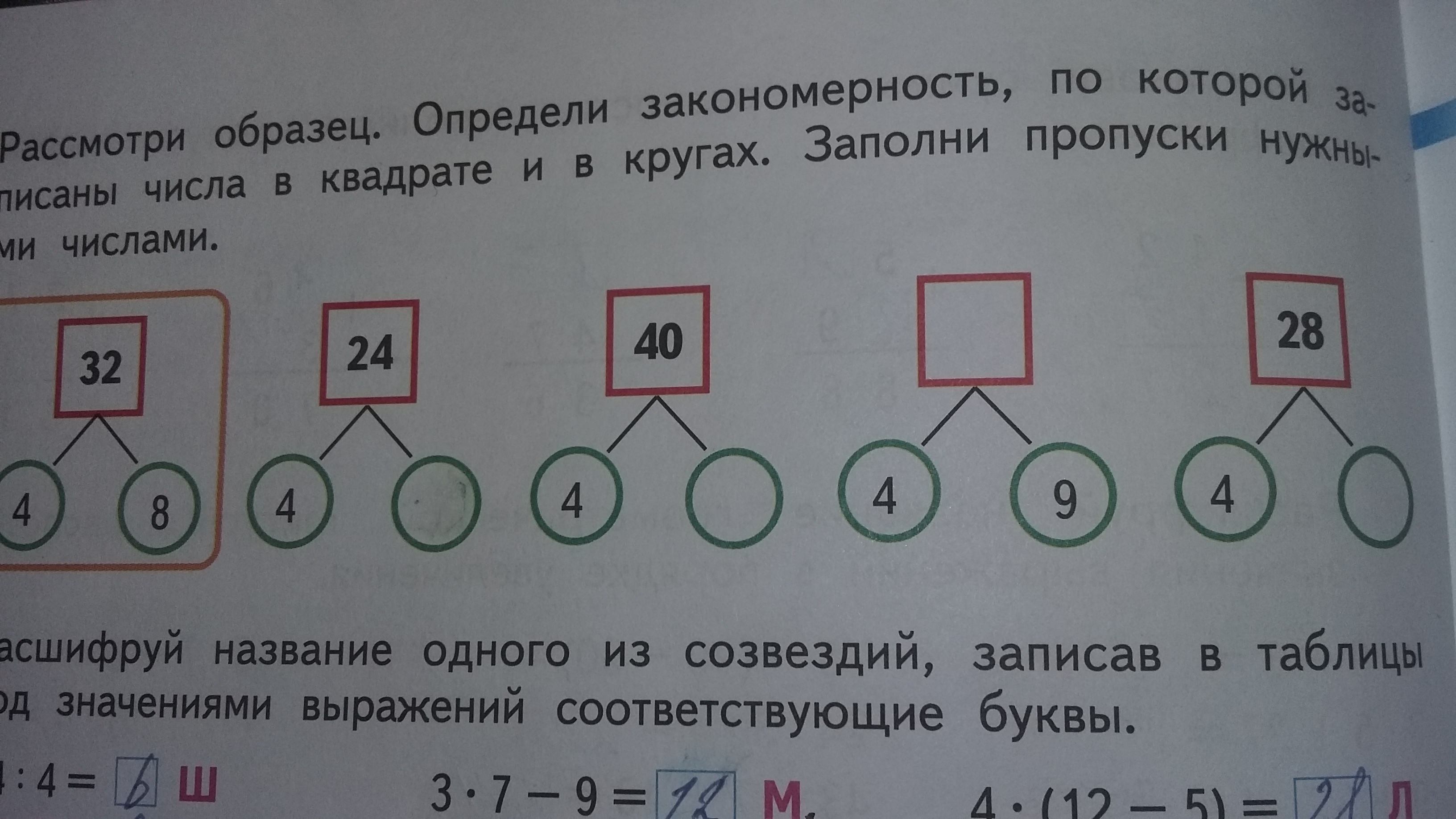 определите закономерность по которой записаны числа в квадрате и а кругах. заполни пропуски нужными числами.