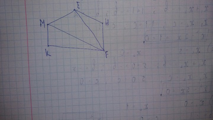 изоброзите пяти угольник E H F K M . Соедините вершину F с несоединёными вершинами пятиугольника . Какие многоугольники образовались на рисунке?