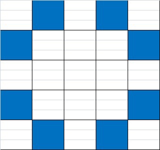 можно ли в квадрате 5*5 покрасить 8 клеток так, чтобы у каждой покрашенной клетки было ровно 3 нерокрашенных соседних клетки? Клетки считаются соседними, если у них есть общая сторона.