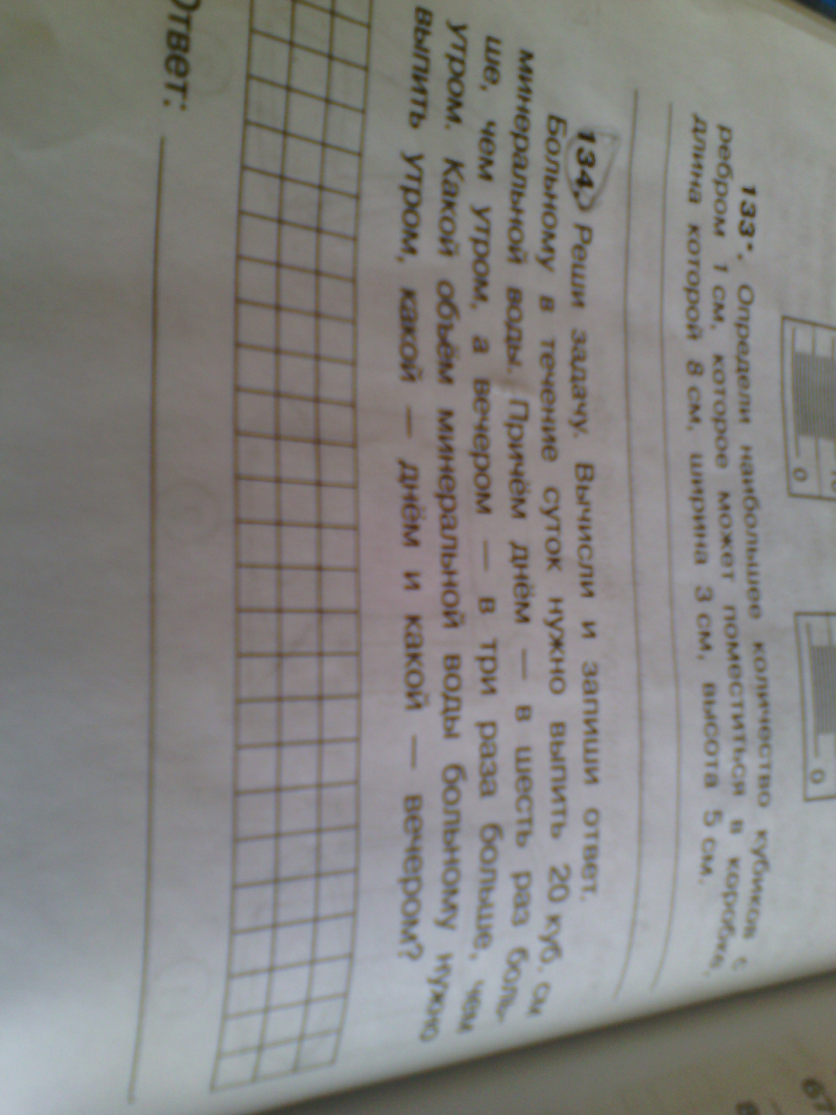 больному в течение суток нужно выпить 20 куб. см Минеральные Воды. Причем днем через 6 раз больше, чем утром, вечером в 3 раза больше, чем