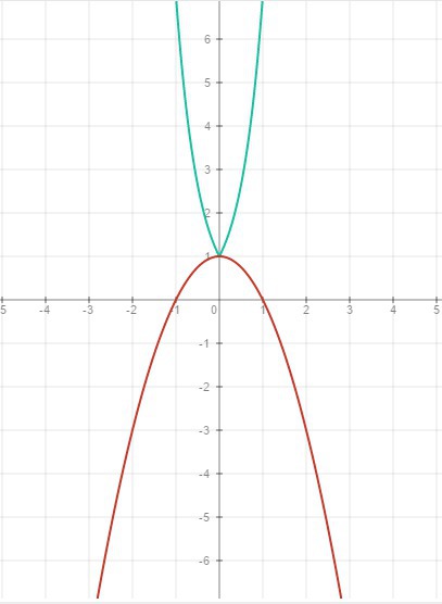 На графике хорошо видно, что все значения функции у=7^|x| (зеленый график) больше или равно 1, а значения функции у=1-х² (красный график) меньше или равно 1.