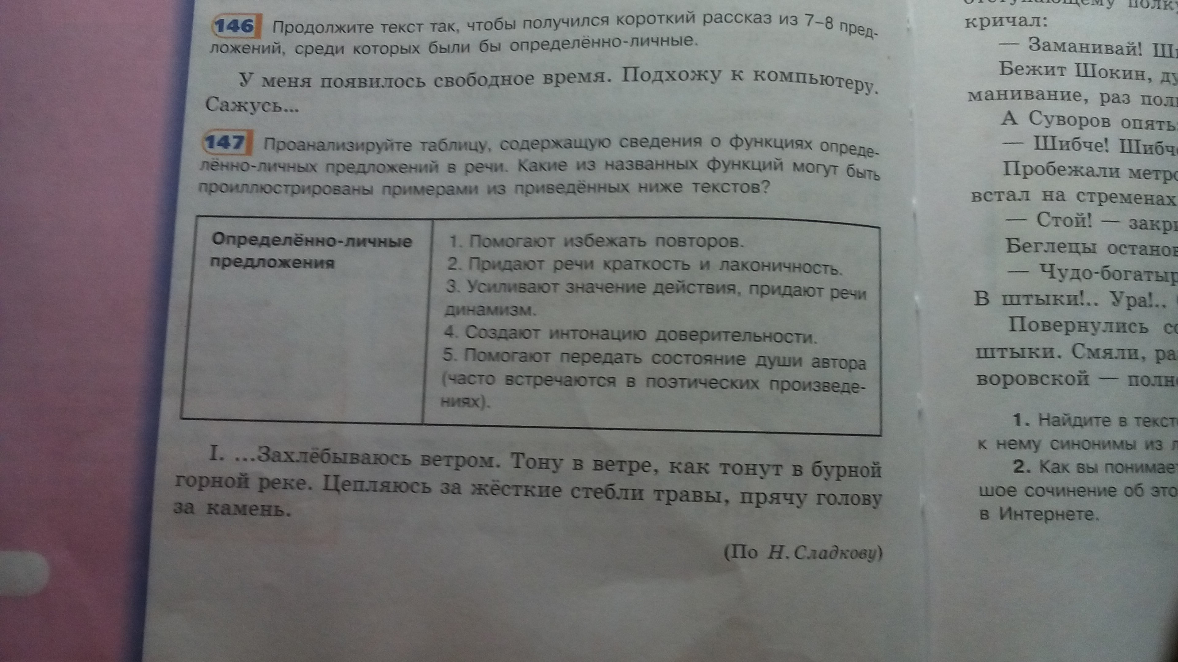 используя данные таблицы и примеры расскажите о роли определенно личных предложений в речи