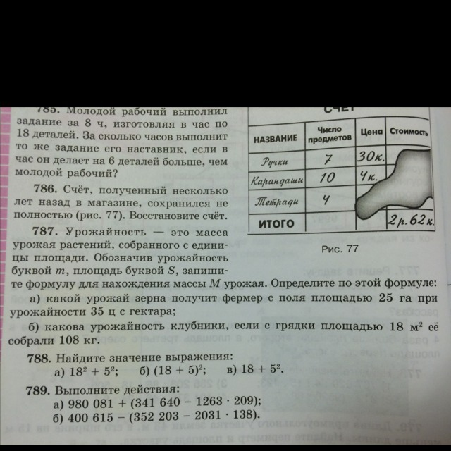 Ответ тетради стоят 3 итого 21 стоймость 2р 62к