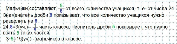 Сначала найдем, сколько туристы проехали в первый день пути. Число 324 и относящаяся к нему дробь 5/18 стоят в разных строках, значит, это задача на нахождение дроби от числа. Чтобы найти дробь от числа, число умножаем на дробь: