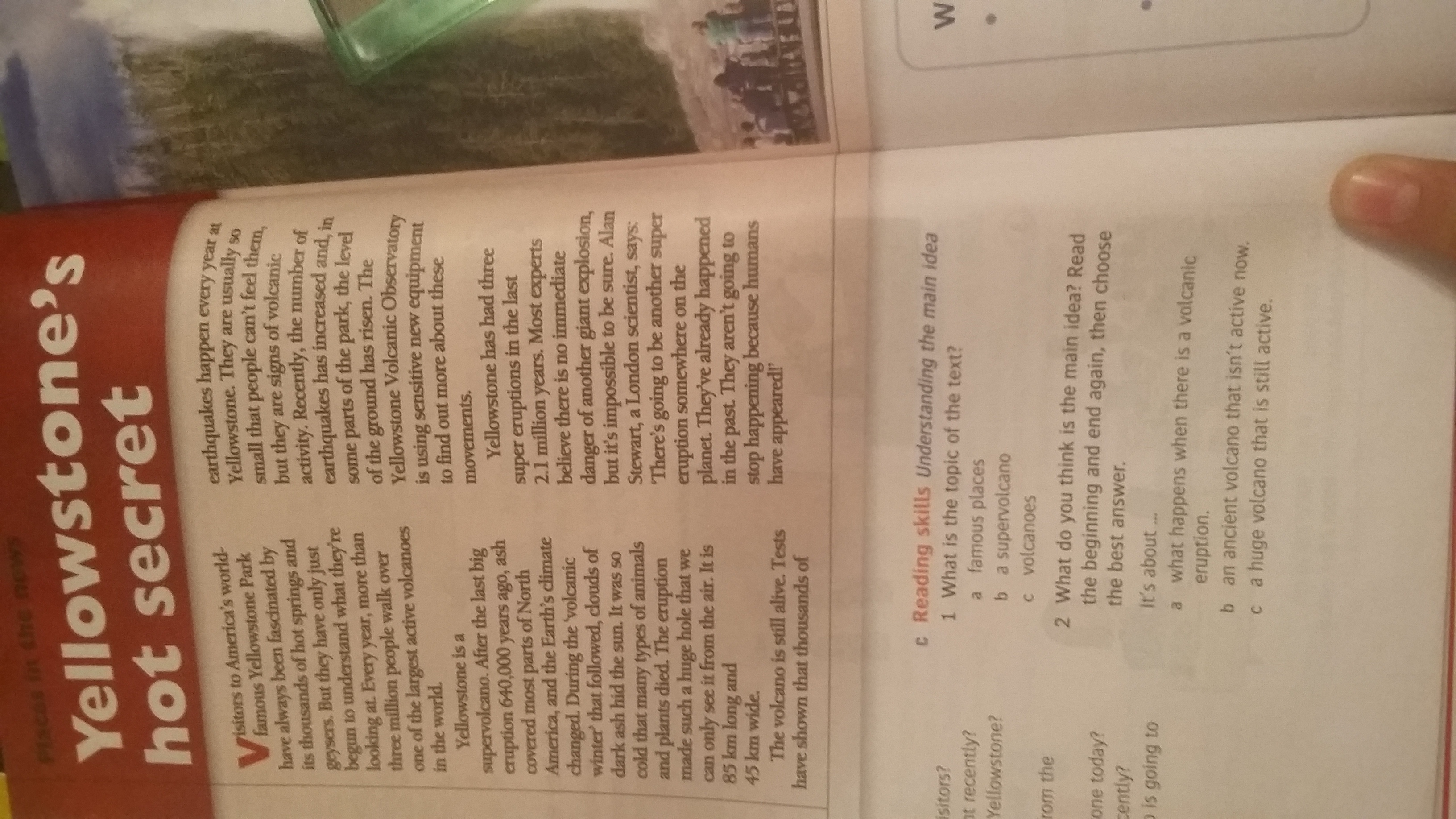 1 (b) supervolcano, 2 (c) a huge volcano that is still active.