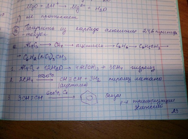 Напишите уравнения реакций,при помощи которых можно из карбида алюминия получить 2,4,6-тринитротолуол. Дайте названия реакциям и веществам,которые образовались в результате превращений, укажите условия рекций