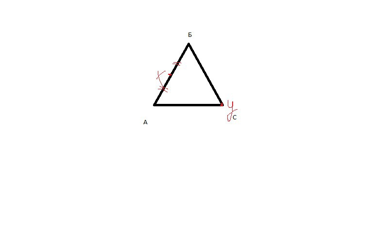 ну если ничего объяснять не нужно, построй просто равнобедренный/равносторонний треугольник, тогда у совпадает с С и как бы все равно лежит на прямой, ну а с х ,думаю, итак все понятнно