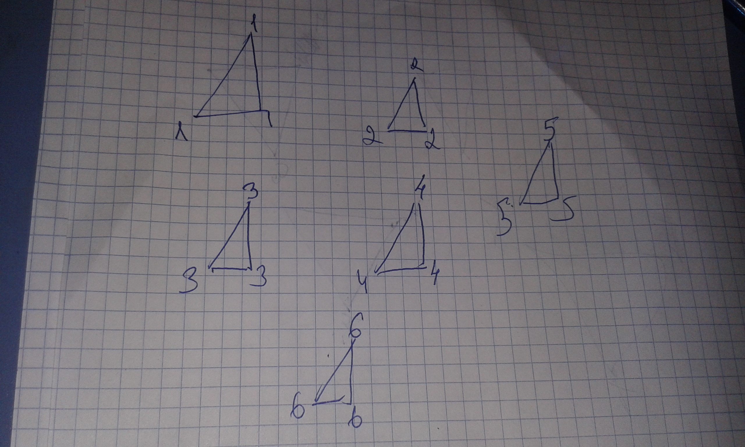Разместить числа 1,2,3,4,5,6 по одному около вершин треугольника и около середин его сторон так,чтоб сумма трех чисел расположеных около любой стороны,была одна и та же.