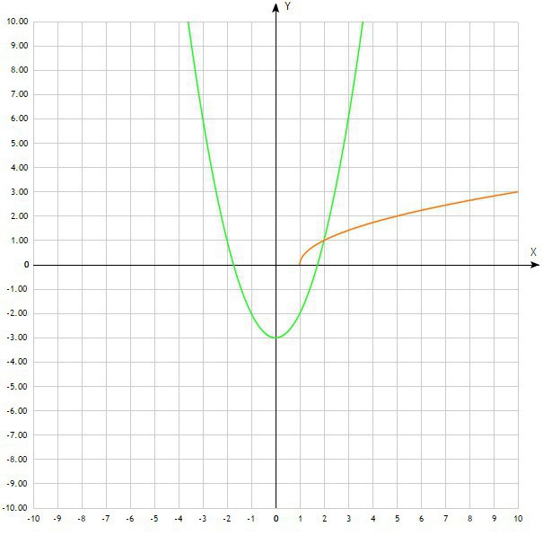 Строим два графика (во вложении, последние 2 картинки, зеленый f(x), оранжевый g(x)):