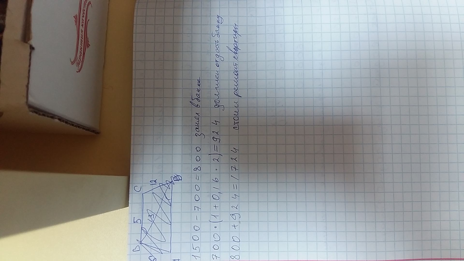 Ваниному папе было необходимо 1500€ на ремонт квартиры. У него было 700€. Недостающую сумму он занял в банке на 2 года с процентной ставкой 16% в год. В какую сумму обошёлся ремонт квартиры?