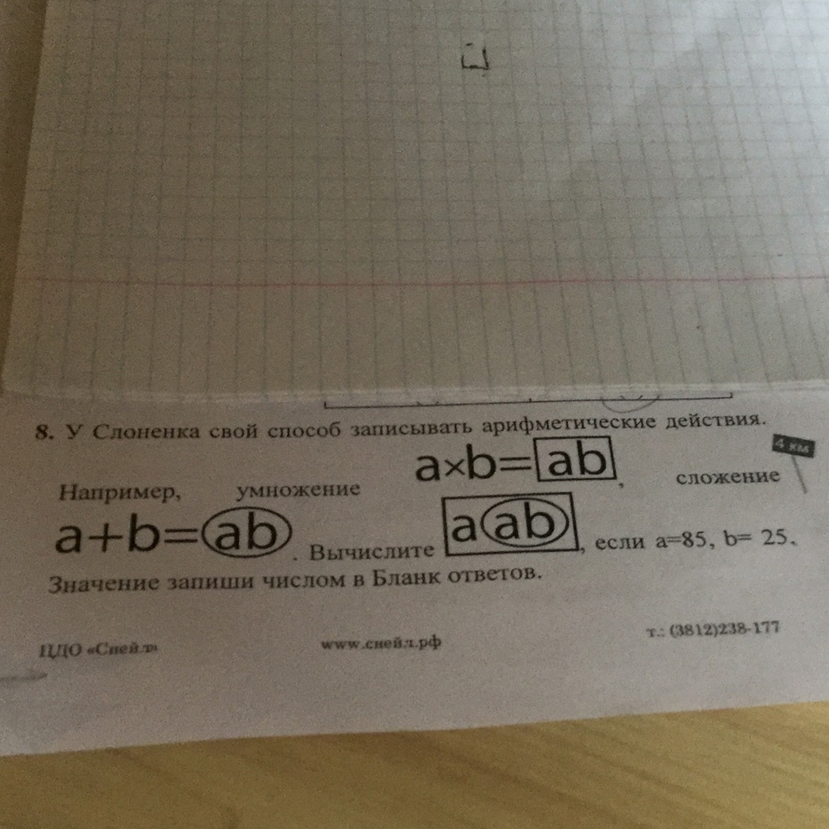 Вот эти обводки уравнений не зря. То есть там можно различить где + а где *. Если подставить вместо a и b числа то получится вот так: 85*85+25. Ответ будет: 7250