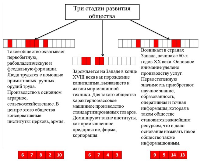 Впишите в схему термины, которые описываются ниже. Все три слова состоят из одного и того же корня. Из каждого термина получите ключевое слово с помощью шифра, где число означает порядковый номер нужной буквы в слове. Запишите эти ключевые слова в ответе строго через один пробел без каких-либо знаков препинания. Учитывайте, что слова должны быть записаны в алфавитном порядке, например братство равенство свобода