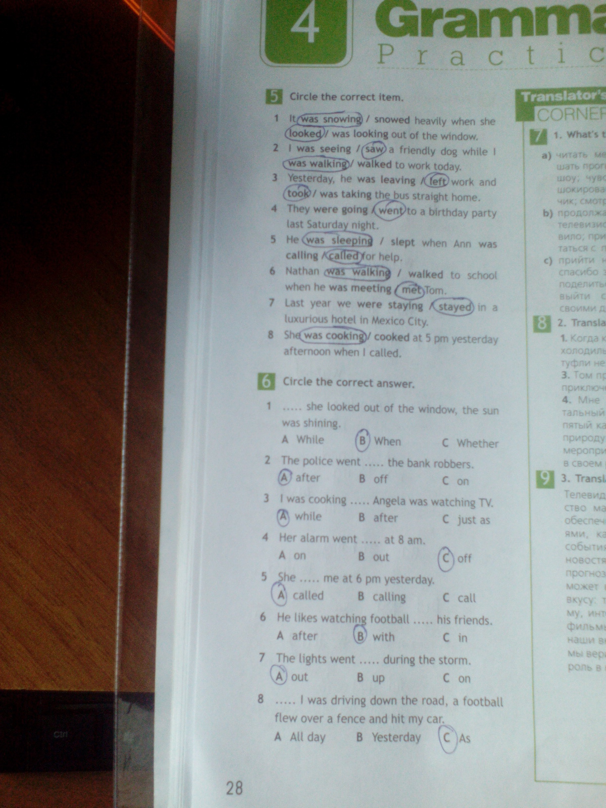 8. Она готовила вчера в 5 часов вечера, когда я позвонил.