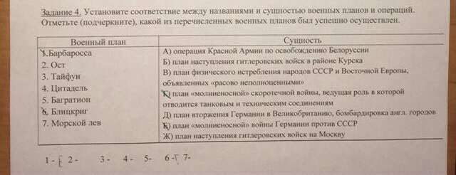 Установить соответствие между названиями и сущностью военных планов и операций . (внизу фото,там ответы неправильные,не обращай)