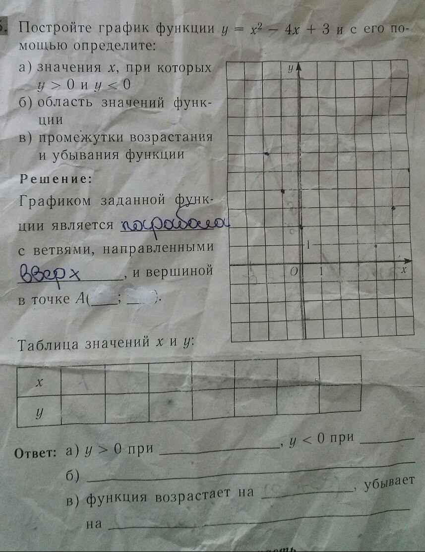 Графиком функции у=х²-4х+3 является парабола с ветвями, направленными вверх, и вершиной в точке А(2,-1), так как
