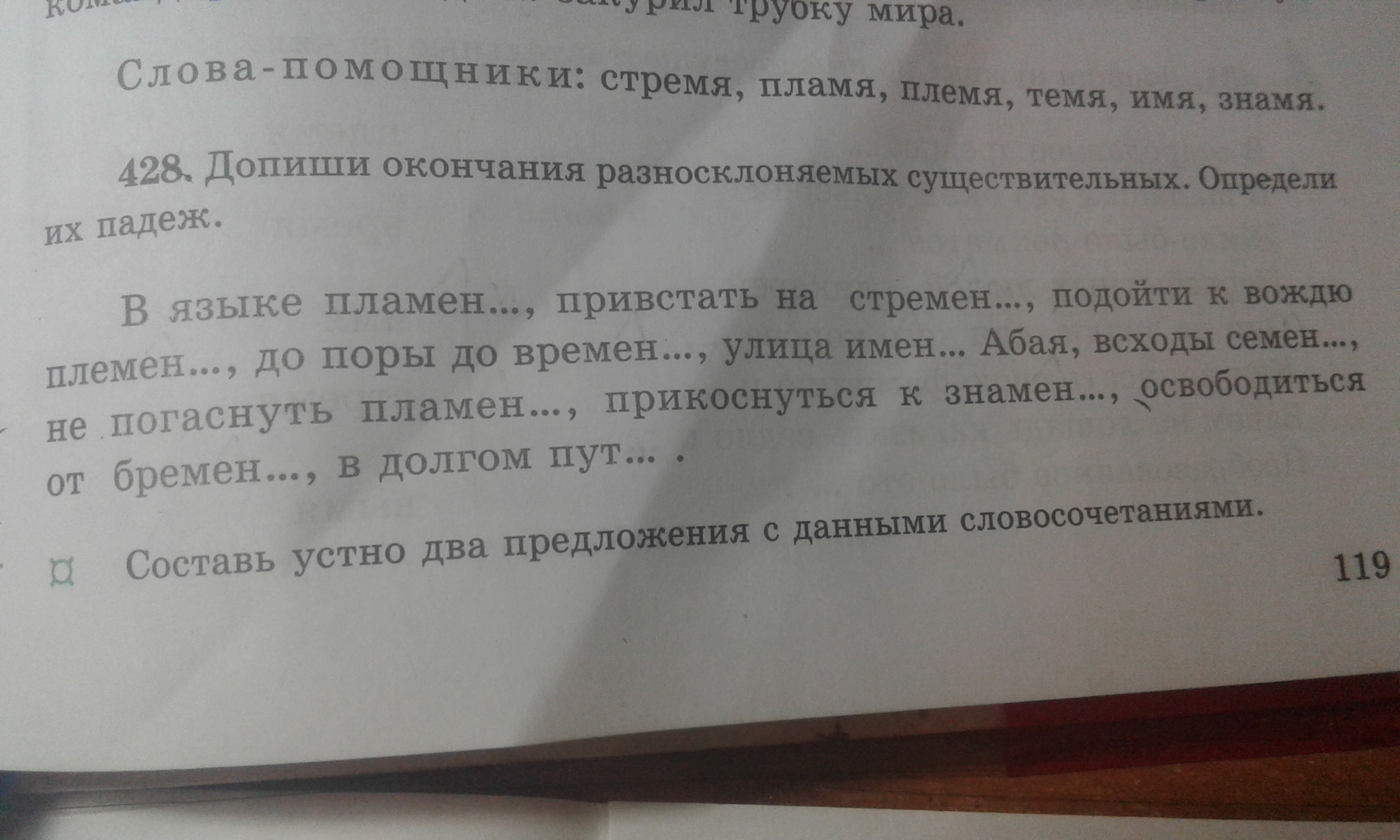 в языке (пламени 3скл Пр.п) привстать (на стремени 3скл Пр.п) подойди к вождю племени 2скл Р.п) до поры до времени 2 скл Р.п)