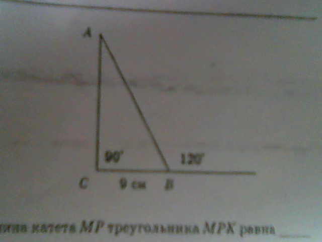 угол В=180-120=60, значит угол А=180-(90+60)=30