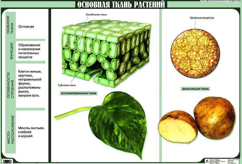 Основная ткань растений образована живыми тонкостенными клетками без специализации, округлой формы, расположены рыхло. Эта ткань составляет основу растения. Основная функция ее - синтез и накопление веществ. Именно клетки основной ткани содержат хлорофилл и отвечают за процесс фотосинтеза.