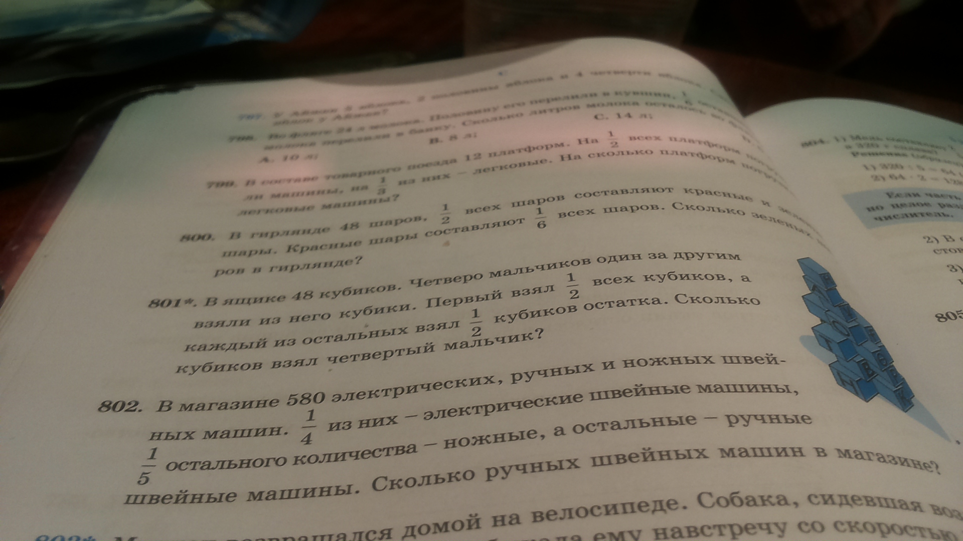 всего в ящике- 48 кубиков Четверо мальчиков взяли кубики 1 мальчик взял - 1 / 2 всех кубиков. Остальные трое м. взяли- 1 / 2 часть остатков кубиков. Ск. Кубиков взял 4 мальчик вроде бы так,я точно не знаю