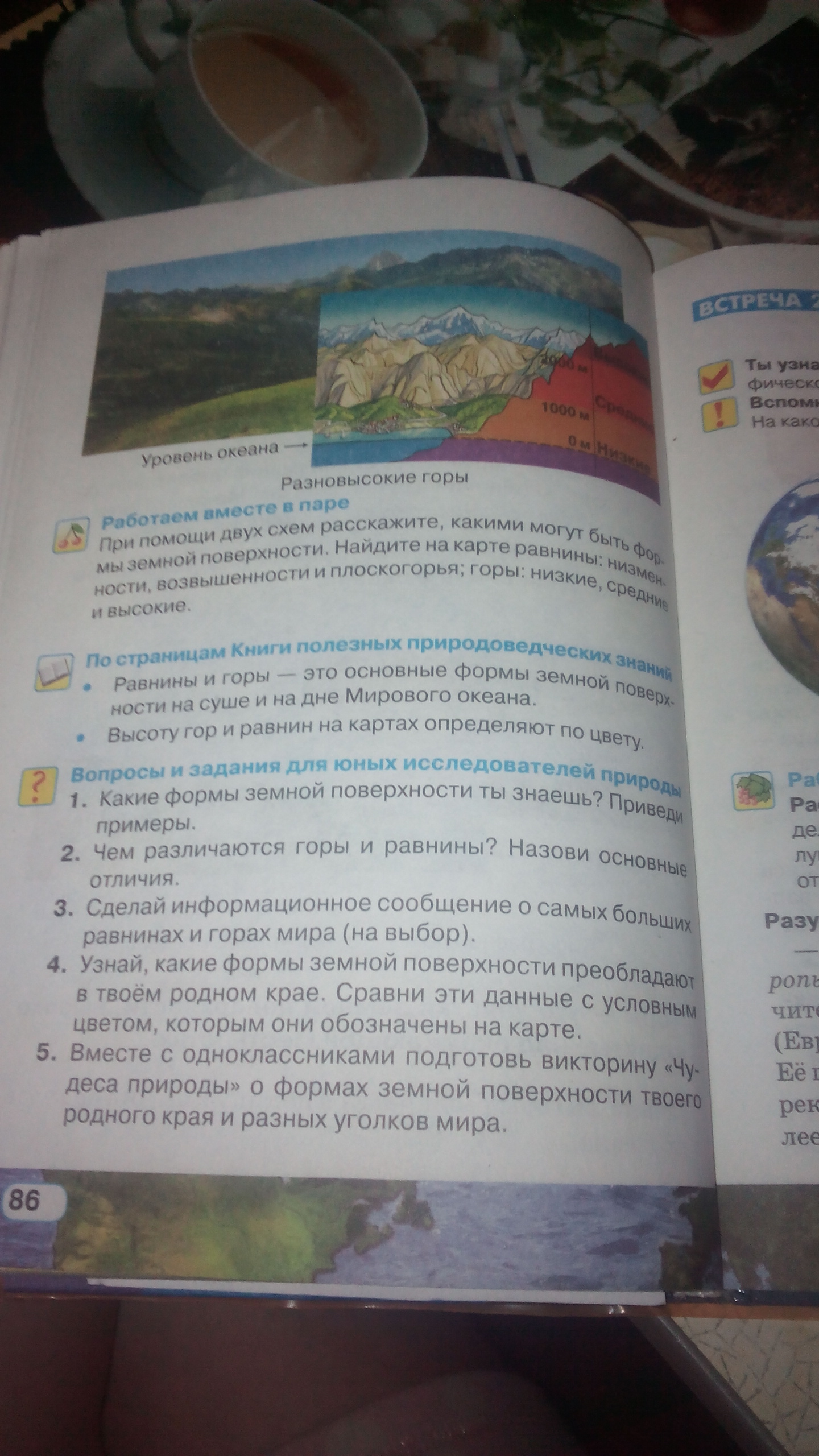 2. горы вытянутые, резкие равнины более плавные и пологие