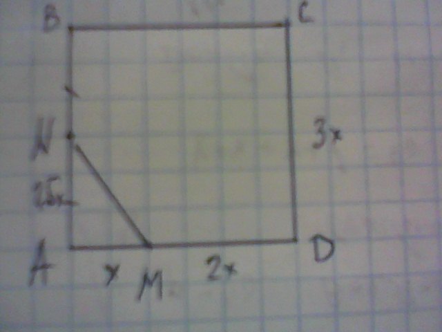 Тогда получается, что точка М делит сторону АD в отношении 1:3, а в условии 1:2. Разве нет?