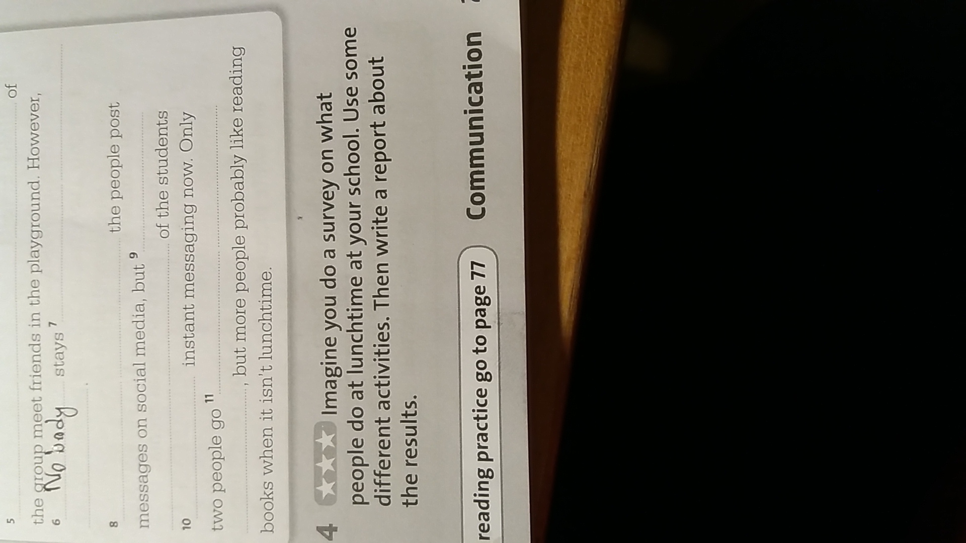 представьте, что вы делаете опрос о том, что люди делают обеденный перерыв в вашей школе. Используя различных видов деятельности. Затем написать отчёт о результатах