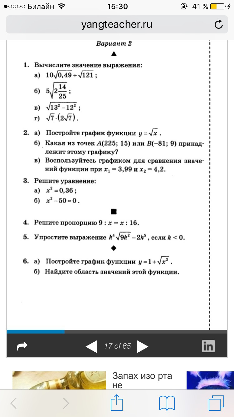 а) Область определения функции y=√x это промежуток (0;+∞). Функция не принимает отрицательных значений. От сюда следует, что т.А - единственное правильное решение