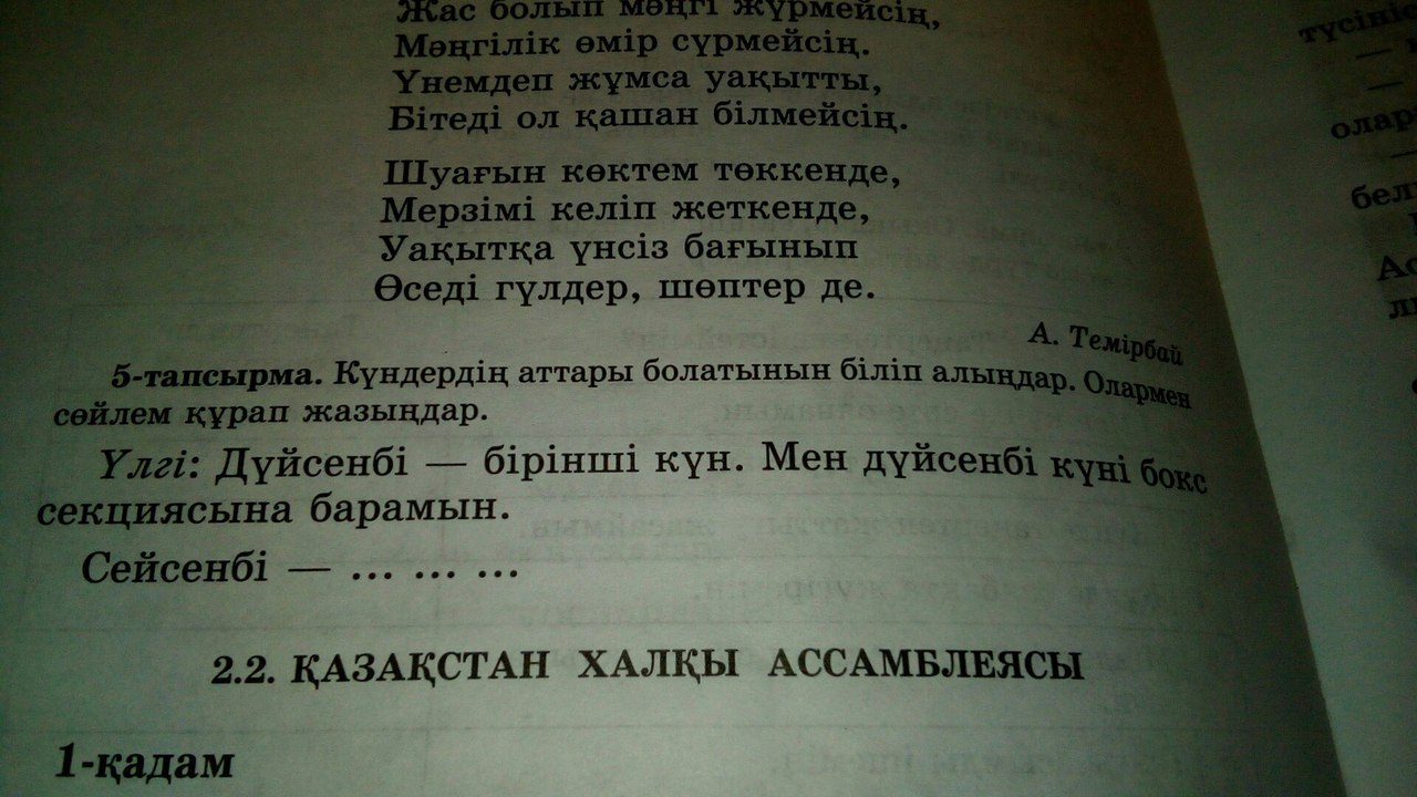 сейсенби -екинши кун.Мен сейсенби куни сурет сабагына барам