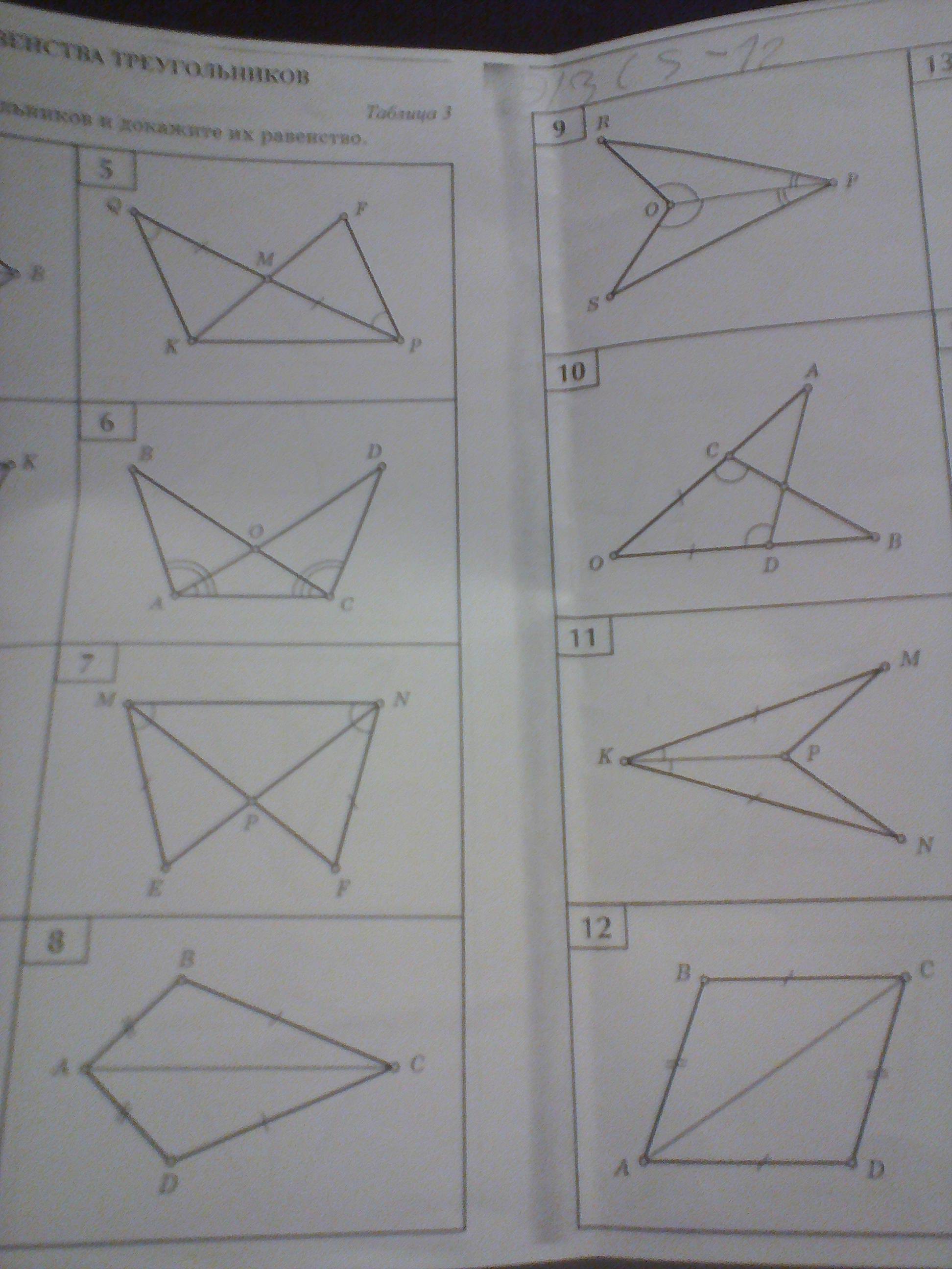 Первый признак равенства треугольников: Если две стороны и угол между ними одного треугольников соответственно равны двум сторонам и углу между ними другого треугольника, то такие треугольники равны.