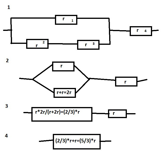Пусть R = 2Ом - сопротивление одного резистора