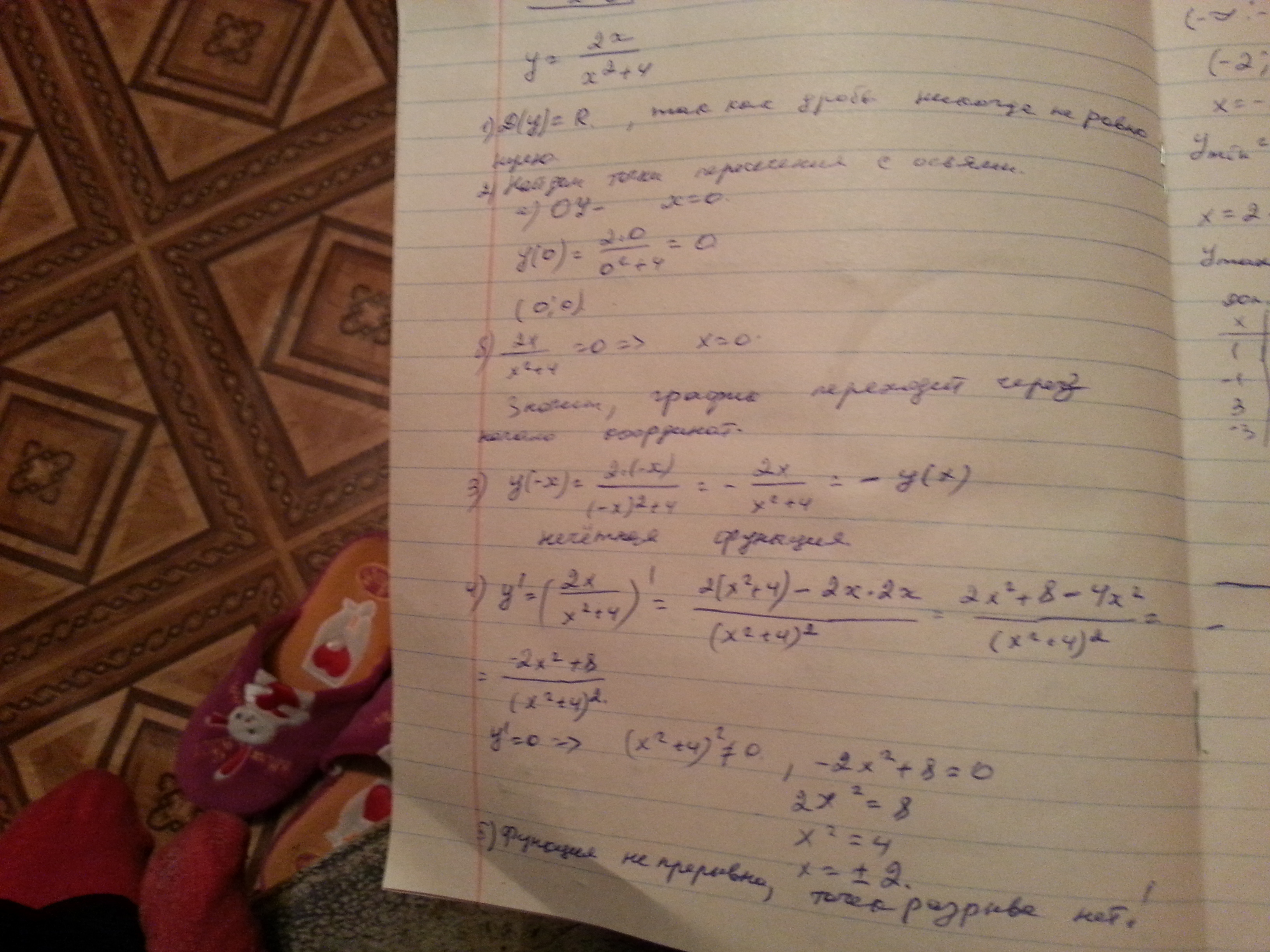 y`=(2x²+8-4x²)/(x²+4)²=(8-2x²)/(x²+4)²=0