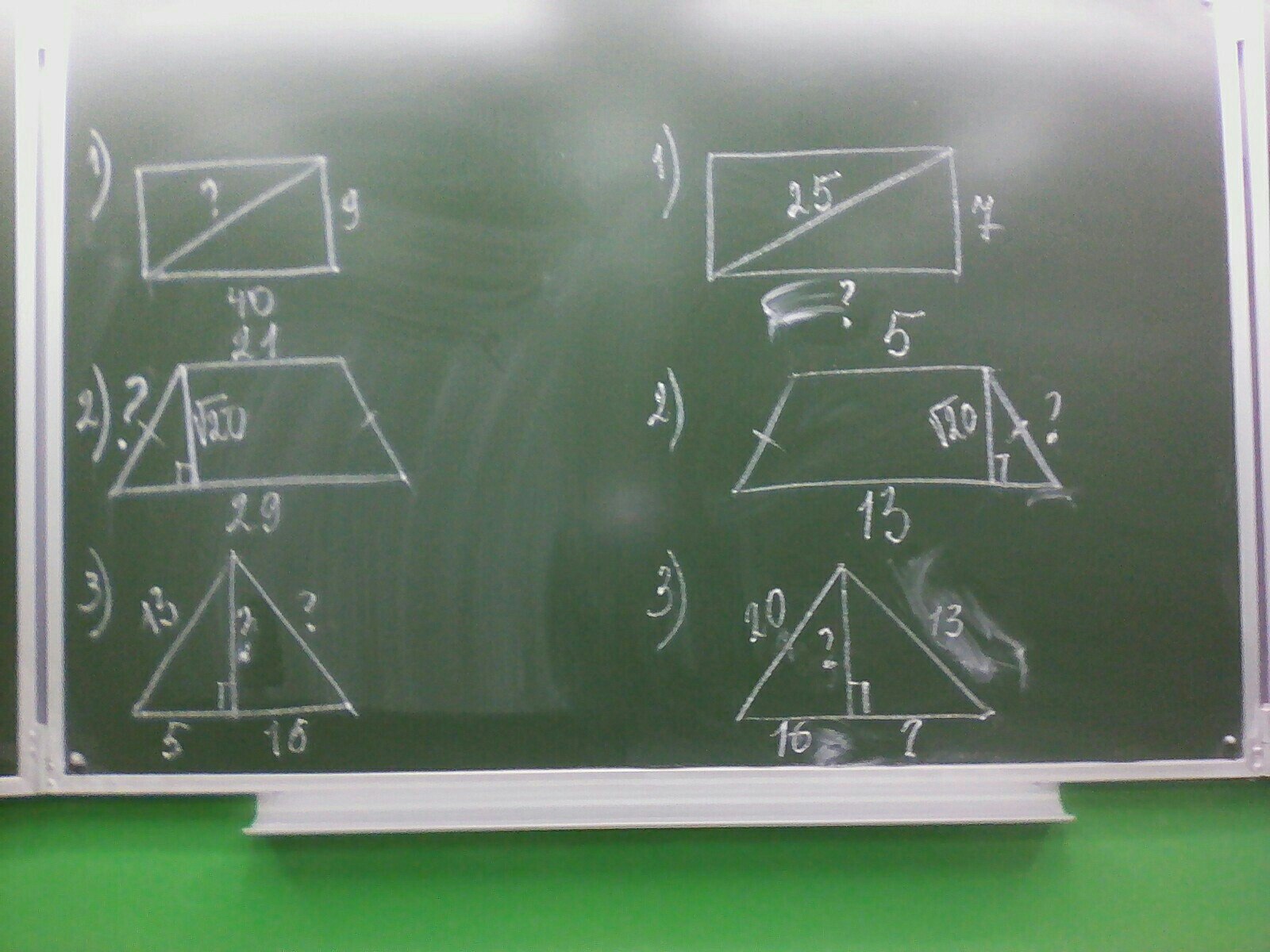 Дополнительные построения: проведем еще одну высоту из другого тупого угла трапеции. В итоге имеем основание, разделенное на 3 части, одна из которых равна 5, остальные 2 равны (13-5)/2=4
