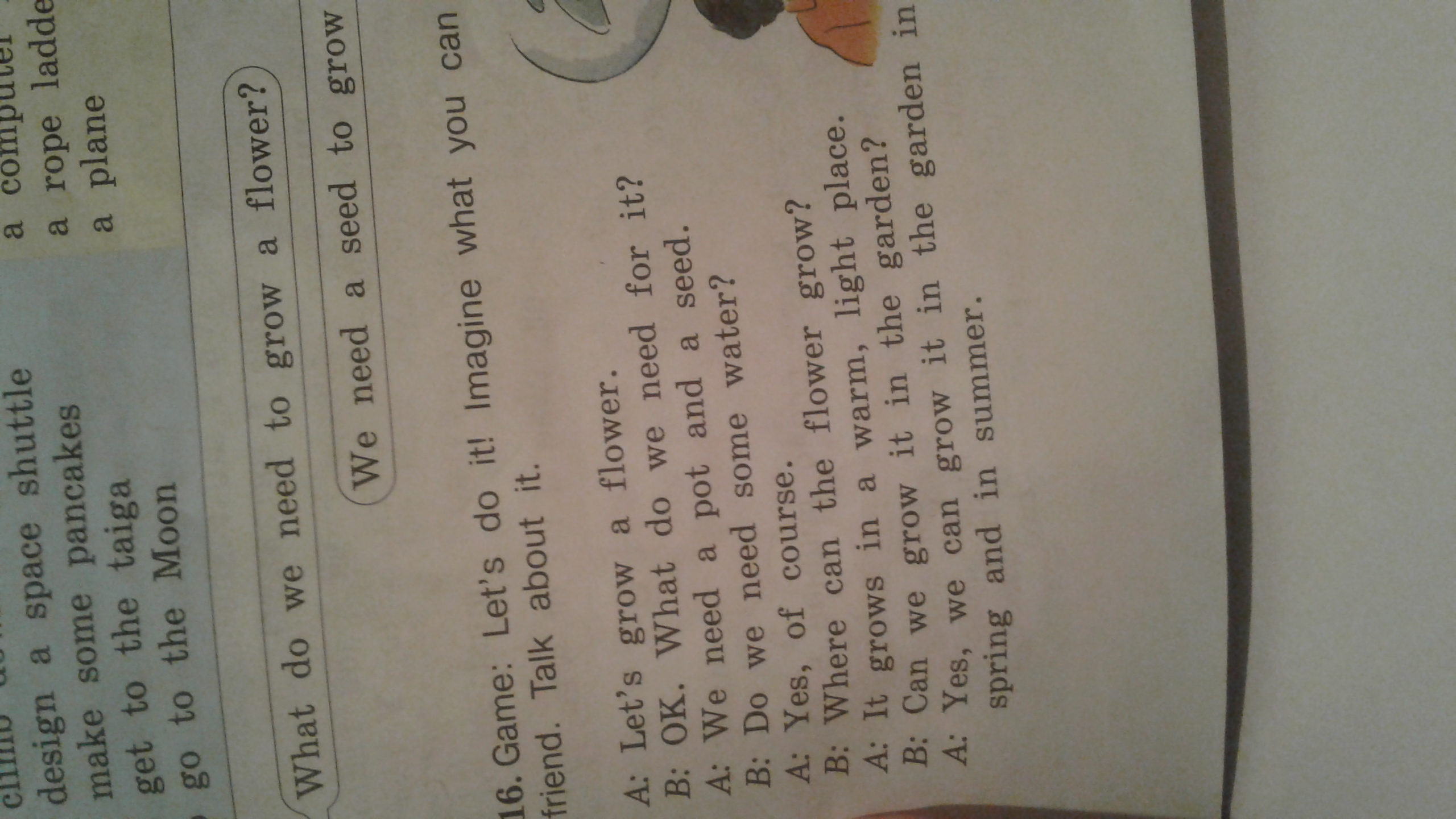 А: Давай, вырастим цветок.