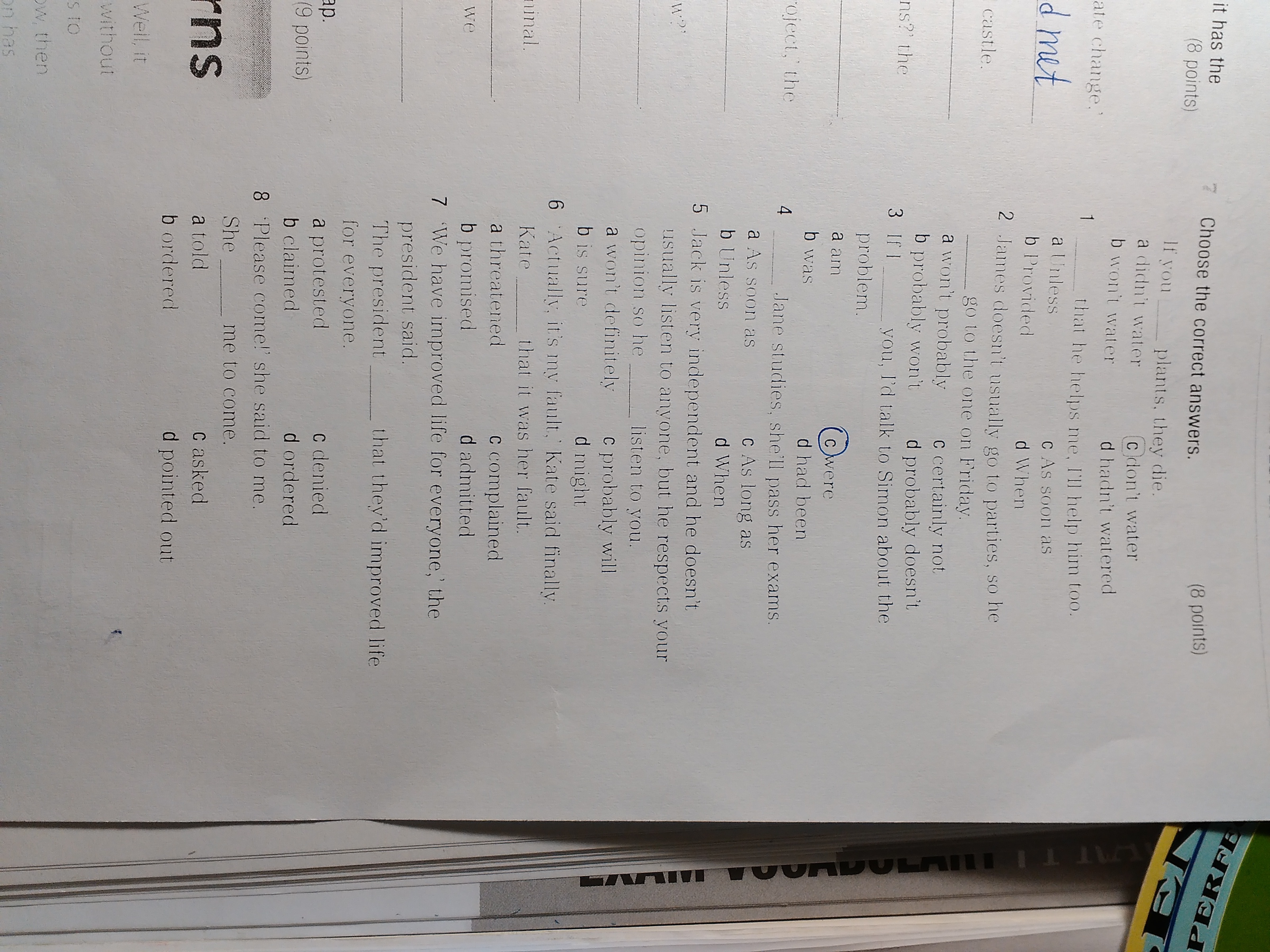 1b, 2b, 3c, 4c, 5d, 6d, 7b, 8c