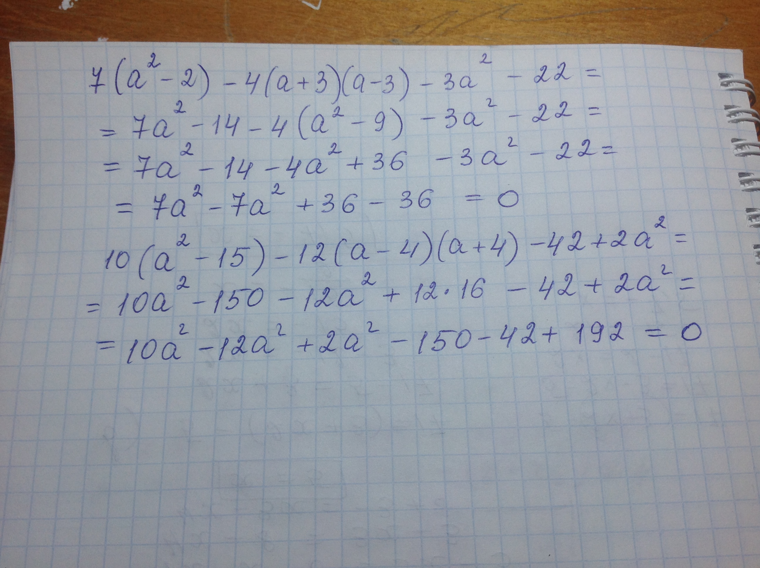 7(а^2-2)-4(a+3)(a-3)-3a^2-22