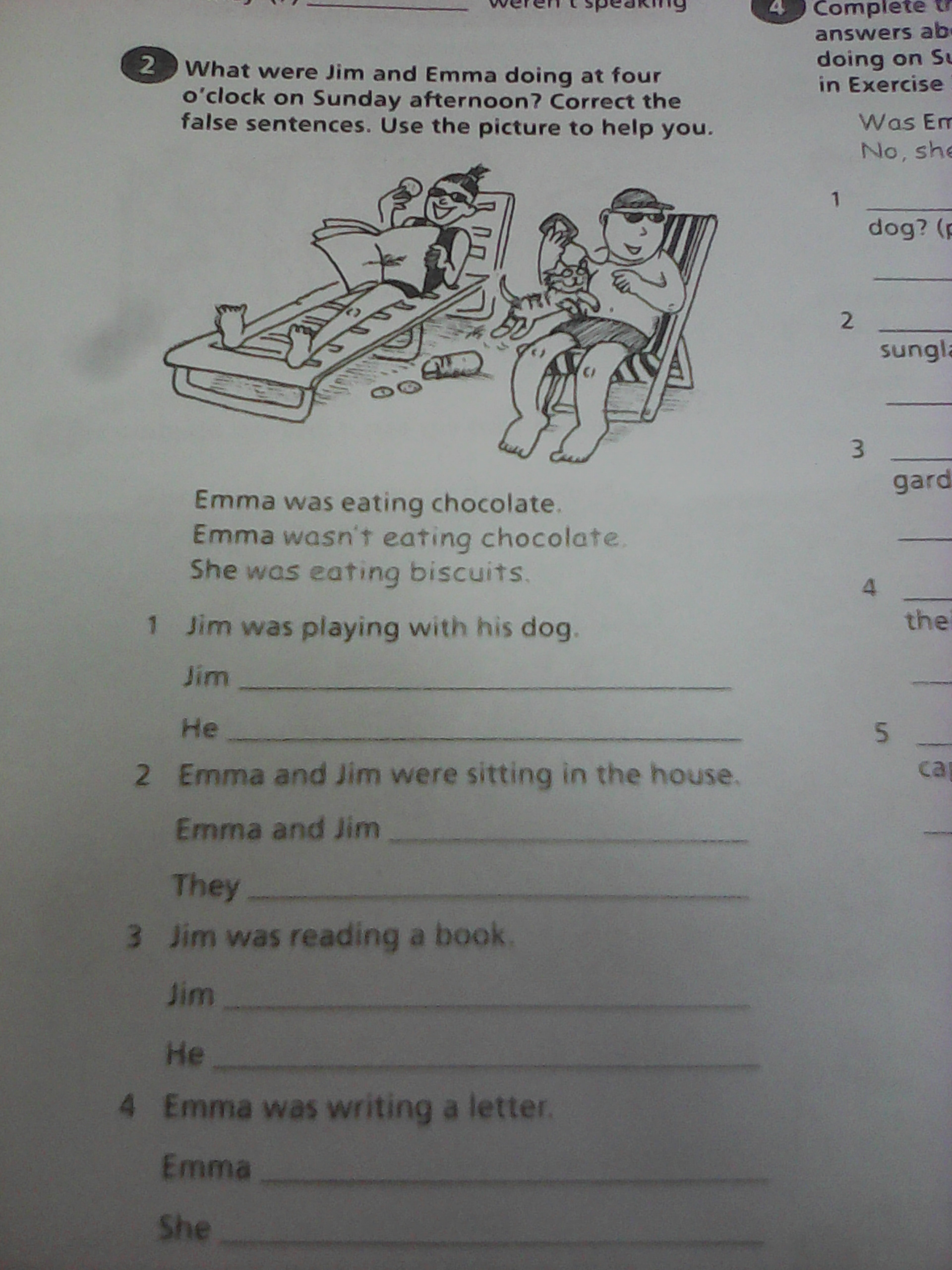 Забыл... где Emma and Jim were sitting on the beach, замени Emma and Jim на They