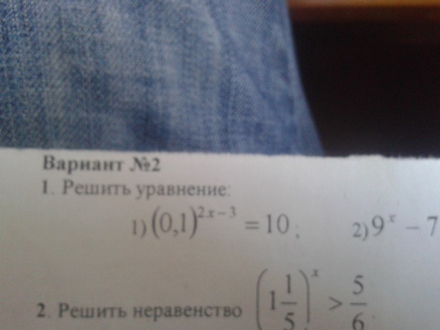 0,1^2x-3=10;(10^-1)^2x-3=10;10^-2x+3=10;-2x+3=1;-2x=-2;x=1. Ответ x=1