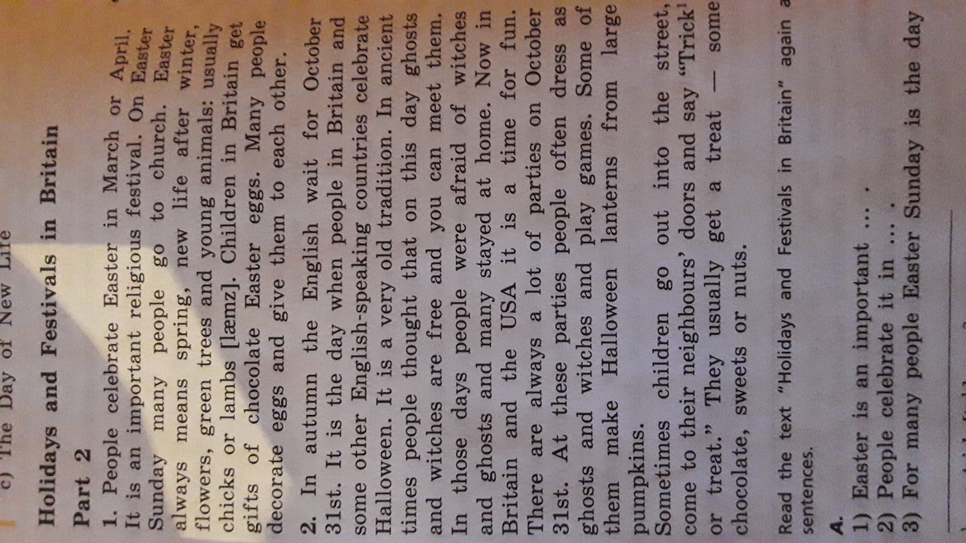 Люди отмечают пасху в марте или апреле. Это главный религиозный праздник . На пасху . в воскресенье многие люди идут в церковь. Пасха ознаменовывает весну , новую жизнь после зимы , цветы, зеленые деревья и молодых животных, обычно птенцов или ягнят . Дети в Британии получают в подарок пасхальные шоколадные яица. Многие люди украшают яица и раздают их