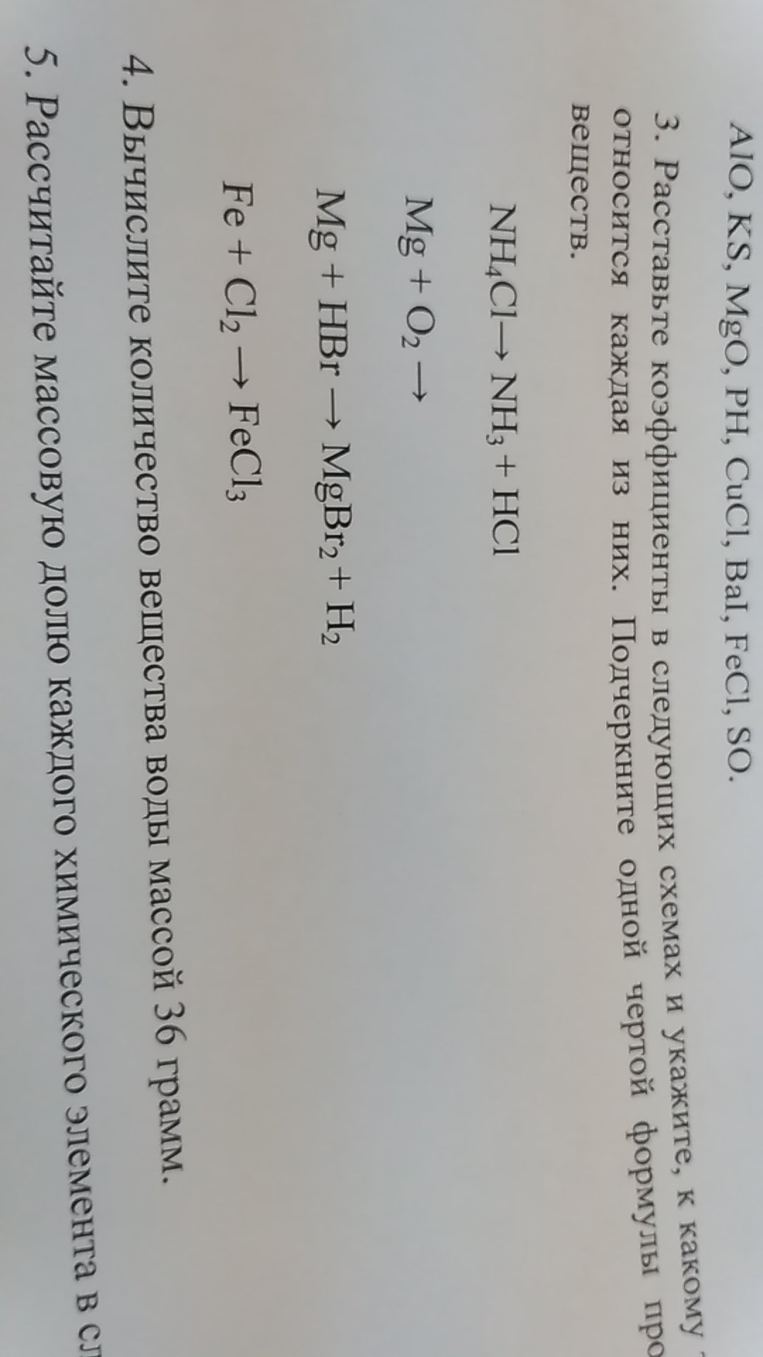 расставьте коэффициенты в следующих схемах и укажите, к какому типу относится каждая из них