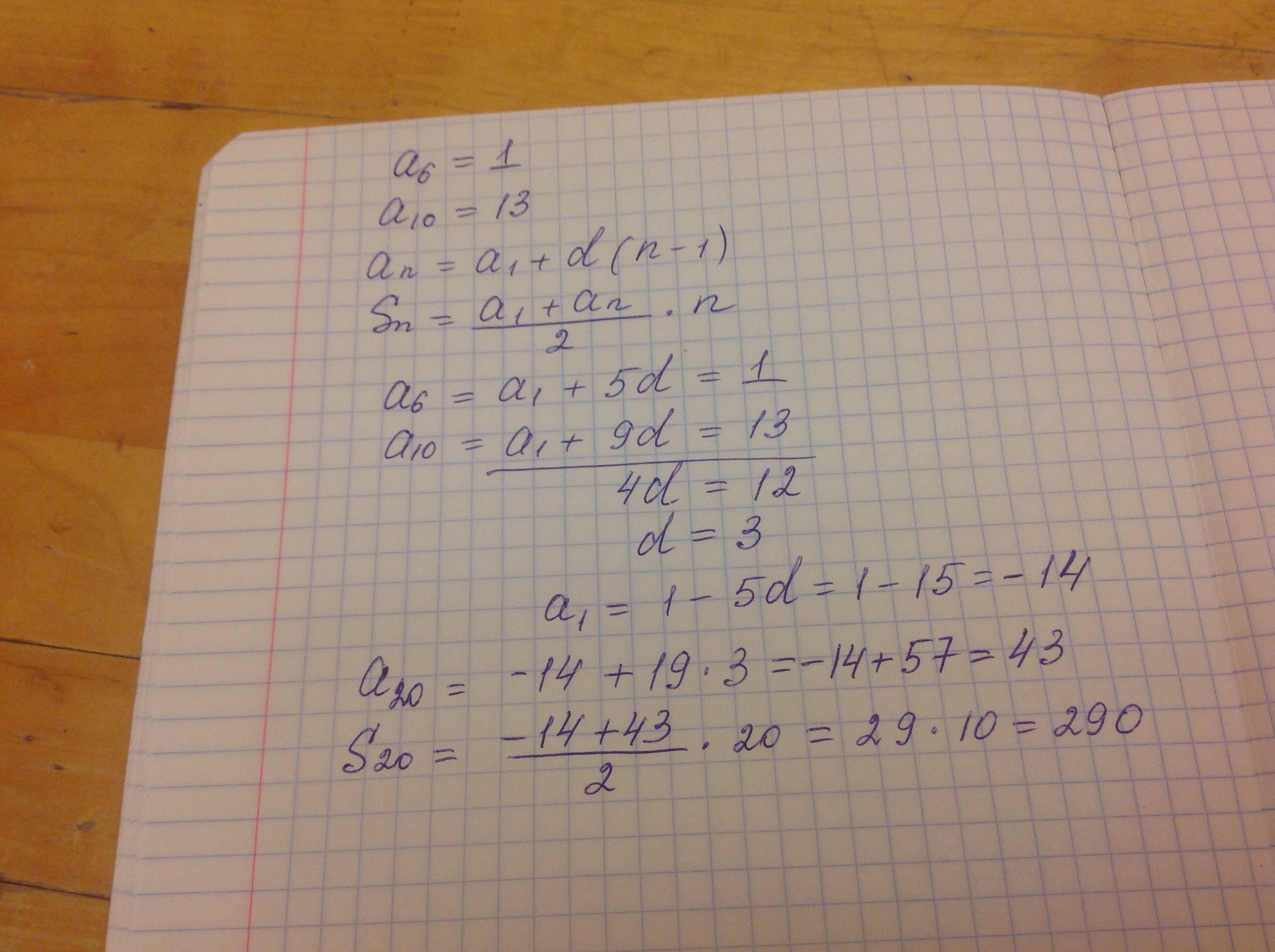 в арифметической прогрессии а6=1 и а10 =13 найдите сумму первых двадцати членов