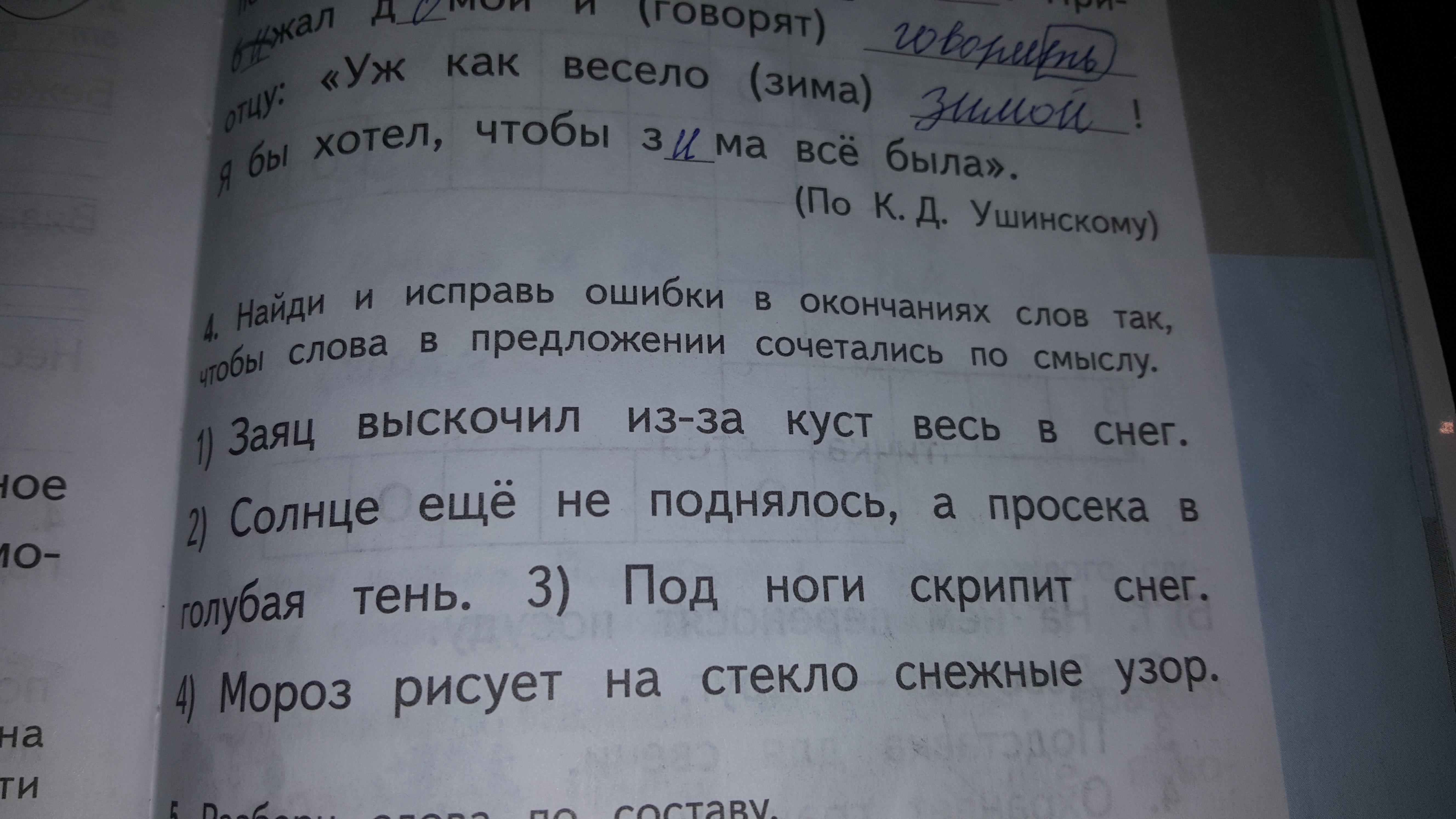 найди и справь ошибки в окончания слов так, чтобы слова в предложении сочетались по смыслу.