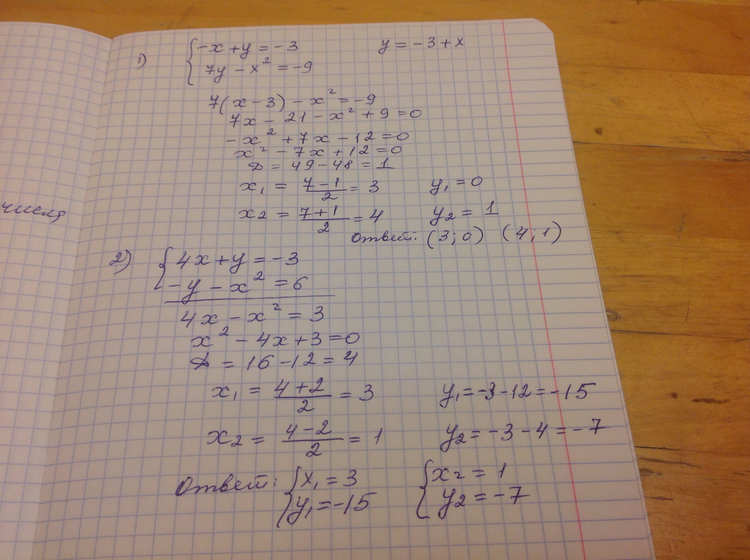 { 7у-х^2 = -9