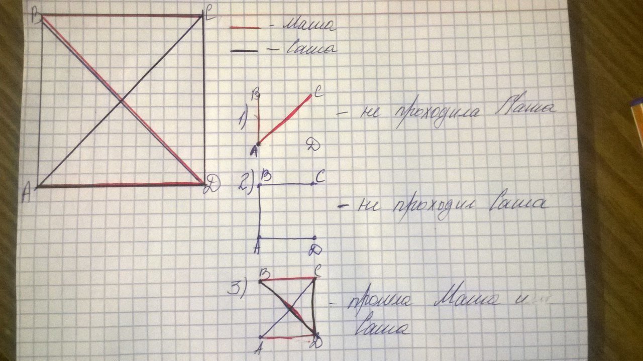 В этом парке побывали Маша и Саша.Путь Маши:A,D,B,C. Путь Саши:A,C,D,B.