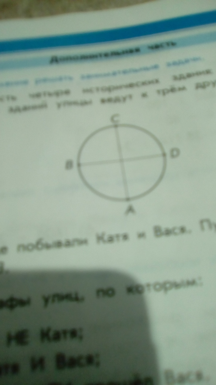 В этом городе побывали Катя и Вася. Путь Кати:A,B,D,C.Путь Васи:A,D,C,B.