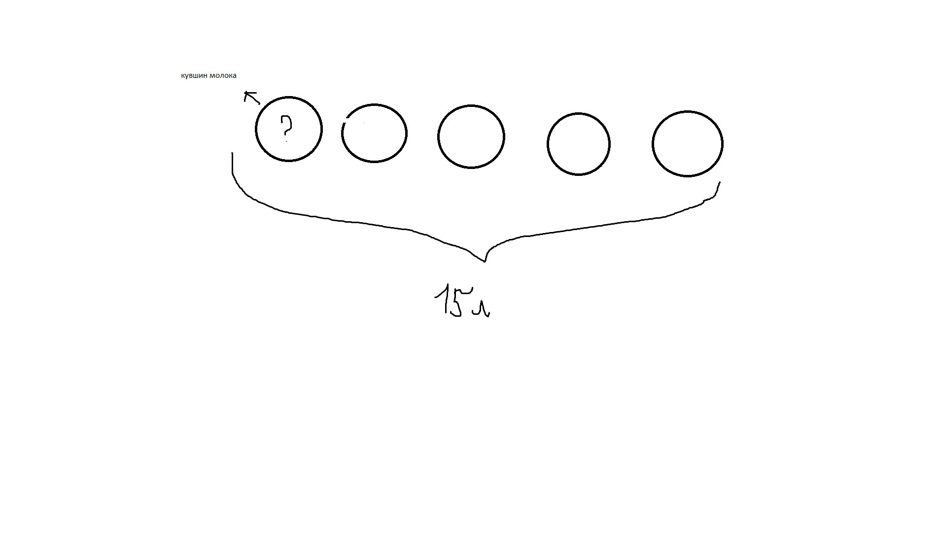 в пяти кувшинах 15 л молока ,во всех поровну .сколько литров молока в одном кувшуне? и схему к задаче