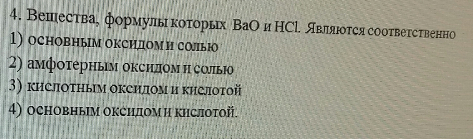 Ответ четвертый(4), т.к. НСl -это соляная кислота