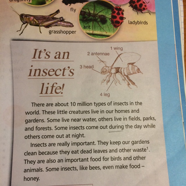 Насекомые и правда очень важны. Они сохраняют наши сады чистыми потому, что они питаются погибшими листьями и другими отходами. А сами они также являются важной пищей для птиц и других животных. Некоторые насекомые, например, пчёлы, даже производят еду - мёд.
