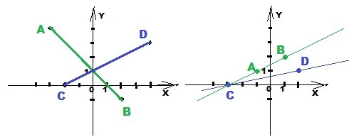 Ответ: точка пересечения отрезков AB и CD - (0;1)