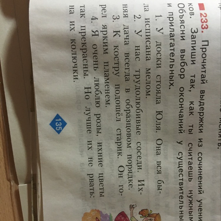 1. Юля стояла у доски. Вся доска была исписана медом. 2. Соседи у нас трудолюбивые. Их дача всегда в образцовом порядке. 3. Старик подошел к костру, который горел ярким пламенем. 4. Я очень люблю розы, потому что эти цветы прекрасны. Но лучше их не рвать, они колючие.